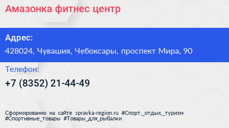 Амазонка, фитнес-центр по адресу 428024, Чувашия, Чебоксары, проспект Мира, 90 в дальнейшем Организация, размещена в следующих категориях: