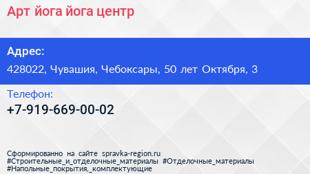 Арт-йога, йога-центр по адресу 428022, Чувашия, Чебоксары, 50 лет Октября, 3 в дальнейшем Организация, размещена в следующих категориях: