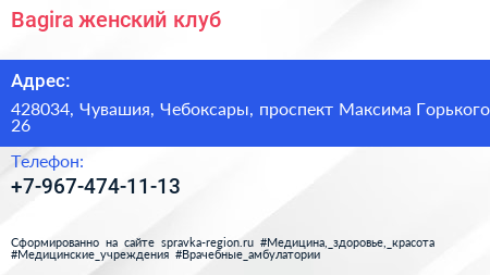 Bagira, женский клуб по адресу 428034, Чувашия, Чебоксары, проспект Максима Горького, 26 в дальнейшем Организация, размещена в следующих категориях: