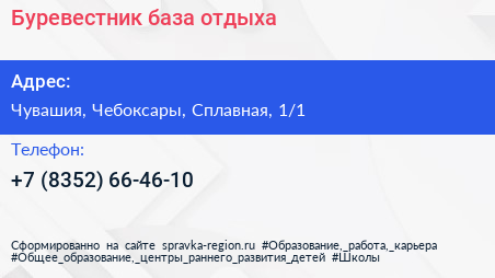 Буревестник, база отдыха по адресу Чувашия, Чебоксары, Сплавная, 1/1 в дальнейшем Организация, размещена в следующих категориях: