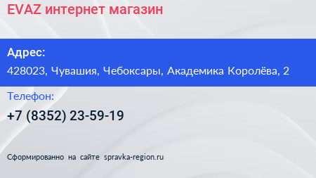 EVAZ, интернет-магазин по адресу 428023, Чувашия, Чебоксары, Академика Королёва, 2 в дальнейшем Организация, размещена в следующих категориях: