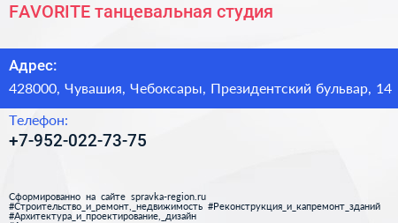 FAVORITE, танцевальная студия по адресу 428000, Чувашия, Чебоксары, Президентский бульвар, 14 в дальнейшем Организация, размещена в следующих категориях: