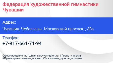 Федерация художественной гимнастики Чувашии по адресу Чувашия, Чебоксары, Московский проспект, 38в в дальнейшем Организация, размещена в следующих категориях: