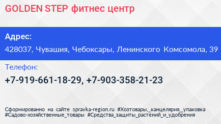 GOLDEN STEP, фитнес-центр по адресу 428037, Чувашия, Чебоксары, Ленинского Комсомола, 39 в дальнейшем Организация, размещена в следующих категориях: