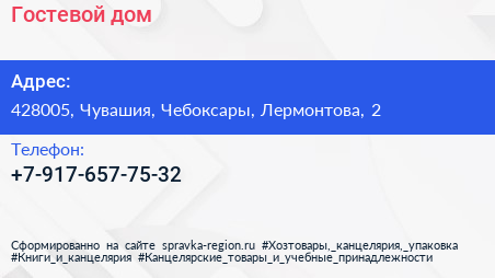 Гостевой дом по адресу 428005, Чувашия, Чебоксары, Лермонтова, 2 в дальнейшем Организация, размещена в следующих категориях: