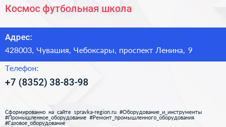 Космос, футбольная школа по адресу 428003, Чувашия, Чебоксары, проспект Ленина, 9 в дальнейшем Организация, размещена в следующих категориях: