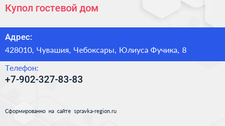 Купол, гостевой дом по адресу 428010, Чувашия, Чебоксары, Юлиуса Фучика, 8 в дальнейшем Организация, размещена в следующих категориях: