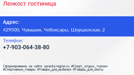 Ленкост, гостиница по адресу 429500, Чувашия, Чебоксары, Шоршелская, 2 в дальнейшем Организация, размещена в следующих категориях:
