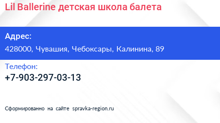 Lil Ballerine, детская школа балета по адресу 428000, Чувашия, Чебоксары, Калинина, 89 в дальнейшем Организация, размещена в следующих категориях: