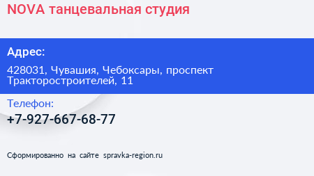 NOVA, танцевальная студия по адресу 428031, Чувашия, Чебоксары, проспект Тракторостроителей, 11 в дальнейшем Организация, размещена в следующих категориях: