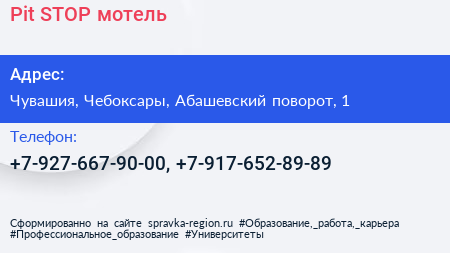 Pit-STOP, мотель по адресу Чувашия, Чебоксары, Абашевский поворот, 1 в дальнейшем Организация, размещена в следующих категориях: