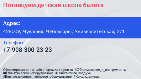 Потанцуем!, детская школа балета по адресу 428009, Чувашия, Чебоксары, Университетская, 2/1 в дальнейшем Организация, размещена в следующих категориях: