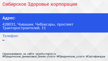 Сибирское Здоровье, корпорация по адресу 428031, Чувашия, Чебоксары, проспект Тракторостроителей, 11 в дальнейшем Организация, размещена в следующих категориях: