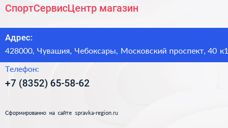 СпортСервисЦентр, магазин по адресу 428000, Чувашия, Чебоксары, Московский проспект, 40 к1 в дальнейшем Организация, размещена в следующих категориях: