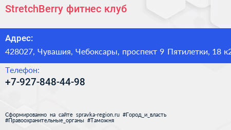 StretchBerry, фитнес-клуб по адресу 428027, Чувашия, Чебоксары, проспект 9 Пятилетки, 18 к2 в дальнейшем Организация, размещена в следующих категориях: