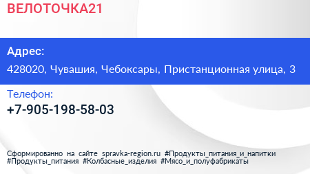 ВЕЛОТОЧКА21 по адресу 428020, Чувашия, Чебоксары, Пристанционная улица, 3 в дальнейшем Организация, размещена в следующих категориях: