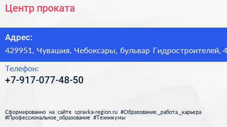 Центр проката по адресу 429951, Чувашия, Чебоксары, бульвар Гидростроителей, 4 в дальнейшем Организация, размещена в следующих категориях: