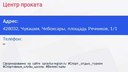 Центр проката по адресу 428032, Чувашия, Чебоксары, площадь Речников, 1/1 в дальнейшем Организация, размещена в следующих категориях: