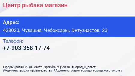 Центр рыбака, магазин по адресу 428023, Чувашия, Чебоксары, Энтузиастов, 23 в дальнейшем Организация, размещена в следующих категориях: