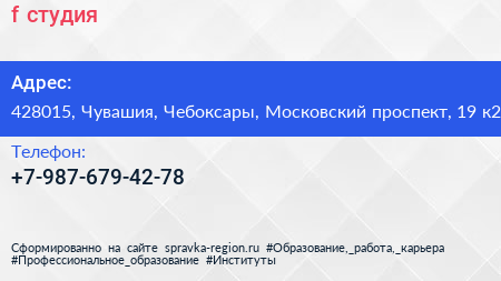 f-студия по адресу 428015, Чувашия, Чебоксары, Московский проспект, 19 к2 в дальнейшем Организация, размещена в следующих категориях: