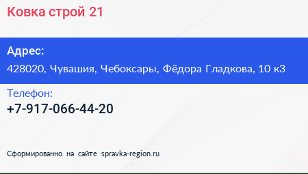 Ковка-строй 21 по адресу 428020, Чувашия, Чебоксары, Фёдора Гладкова, 10 к3 в дальнейшем Организация, размещена в следующих категориях: