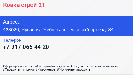 Ковка-строй 21 по адресу 428020, Чувашия, Чебоксары, Базовый проезд, 34 в дальнейшем Организация, размещена в следующих категориях: