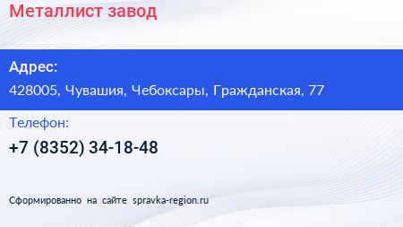Металлист, завод по адресу 428005, Чувашия, Чебоксары, Гражданская, 77 в дальнейшем Организация, размещена в следующих категориях: