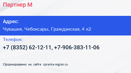 Партнер М по адресу Чувашия, Чебоксары, Гражданская, 4 к2 в дальнейшем Организация, размещена в следующих категориях: