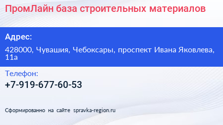 ПромЛайн, база строительных материалов по адресу 428000, Чувашия, Чебоксары, проспект Ивана Яковлева, 11а в дальнейшем Организация, размещена в следующих категориях: