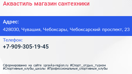 Аквастиль, магазин сантехники по адресу 428030, Чувашия, Чебоксары, Чебоксарский проспект, 23 в дальнейшем Организация, размещена в следующих категориях: