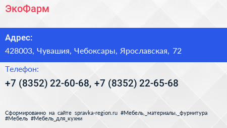 ЭкоФарм по адресу 428003, Чувашия, Чебоксары, Ярославская, 72 в дальнейшем Организация, размещена в следующих категориях: