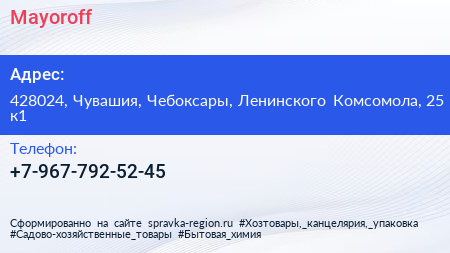 Mayoroff по адресу 428024, Чувашия, Чебоксары, Ленинского Комсомола, 25 к1 в дальнейшем Организация, размещена в следующих категориях: