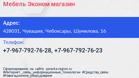 Мебель Эконом, магазин по адресу 428031, Чувашия, Чебоксары, Шумилова, 16 в дальнейшем Организация, размещена в следующих категориях: