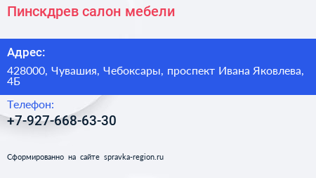Пинскдрев, салон мебели по адресу 428000, Чувашия, Чебоксары, проспект Ивана Яковлева, 4Б в дальнейшем Организация, размещена в следующих категориях: