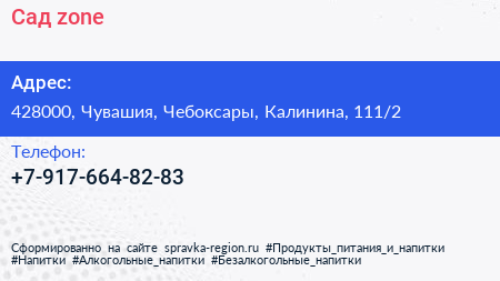 Сад zone по адресу 428000, Чувашия, Чебоксары, Калинина, 111/2 в дальнейшем Организация, размещена в следующих категориях: