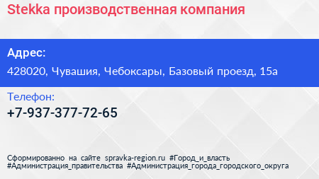 Stekka, производственная компания по адресу 428020, Чувашия, Чебоксары, Базовый проезд, 15а в дальнейшем Организация, размещена в следующих категориях: