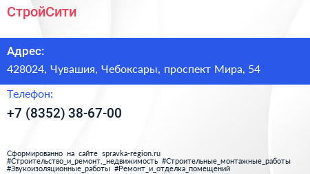 СтройСити по адресу 428024, Чувашия, Чебоксары, проспект Мира, 54 в дальнейшем Организация, размещена в следующих категориях: