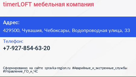 timerLOFT, мебельная компания по адресу 429500, Чувашия, Чебоксары, Водопроводная улица, 33 в дальнейшем Организация, размещена в следующих категориях:
