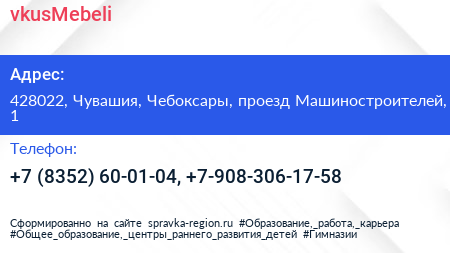 vkusMebeli по адресу 428022, Чувашия, Чебоксары, проезд Машиностроителей, 1 в дальнейшем Организация, размещена в следующих категориях: