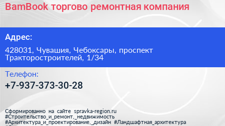 BamBook, торгово-ремонтная компания по адресу 428031, Чувашия, Чебоксары, проспект Тракторостроителей, 1/34 в дальнейшем Организация, размещена в следующих категориях: