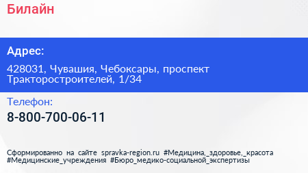 Билайн по адресу 428031, Чувашия, Чебоксары, проспект Тракторостроителей, 1/34 в дальнейшем Организация, размещена в следующих категориях: