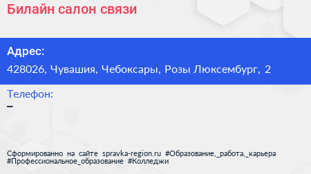 Билайн, салон связи по адресу 428026, Чувашия, Чебоксары, Розы Люксембург, 2 в дальнейшем Организация, размещена в следующих категориях: