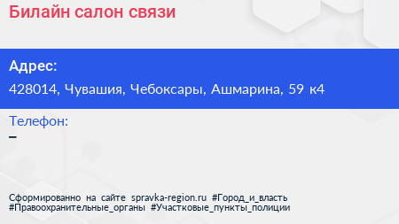 Билайн, салон связи по адресу 428014, Чувашия, Чебоксары, Ашмарина, 59 к4 в дальнейшем Организация, размещена в следующих категориях: