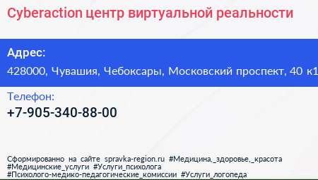 Cyberaction, центр виртуальной реальности по адресу 428000, Чувашия, Чебоксары, Московский проспект, 40 к1 в дальнейшем Организация, размещена в следующих категориях: