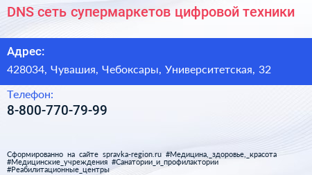 DNS, сеть супермаркетов цифровой техники по адресу 428034, Чувашия, Чебоксары, Университетская, 32 в дальнейшем Организация, размещена в следующих категориях:
