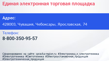 Единая электронная торговая площадка по адресу 428003, Чувашия, Чебоксары, Ярославская, 74 в дальнейшем Организация, размещена в следующих категориях: