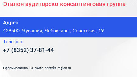 Эталон, аудиторско-консалтинговая группа по адресу 429500, Чувашия, Чебоксары, Советская, 19 в дальнейшем Организация, размещена в следующих категориях: