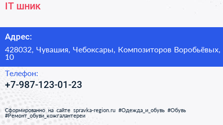 IT-шник по адресу 428032, Чувашия, Чебоксары, Композиторов Воробьёвых, 10 в дальнейшем Организация, размещена в следующих категориях: