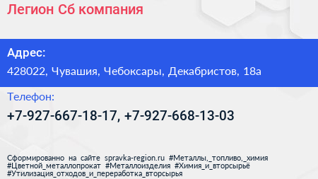 Легион Сб, компания по адресу 428022, Чувашия, Чебоксары, Декабристов, 18а в дальнейшем Организация, размещена в следующих категориях: