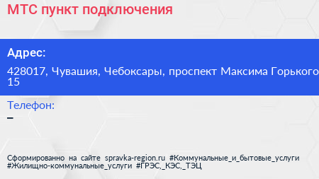 МТС, пункт подключения по адресу 428017, Чувашия, Чебоксары, проспект Максима Горького, 15 в дальнейшем Организация, размещена в следующих категориях:
